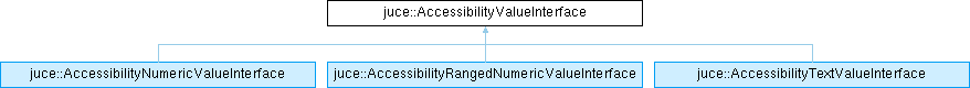 Implemented in juce::AccessibilityTextValueInterface, juce::AccessibilityNumericValueInterface, and juce::AccessibilityRangedNumericValueInterface.