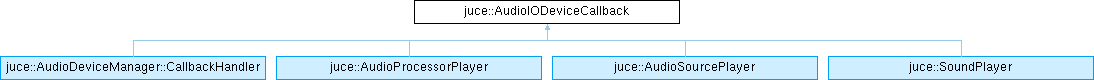 Reimplemented in juce::AudioProcessorPlayer, juce::SoundPlayer, and juce::AudioSourcePlayer.