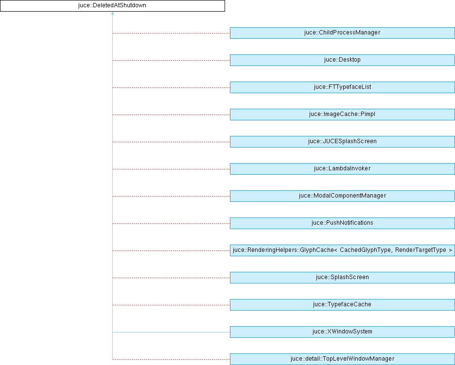 After JUCEApplicationBase::shutdown() has been called, any objects derived from DeletedAtShutdown which are still in existence will be deleted in the reverse order to that in which they were created.