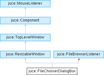 | FileChooserDialogBox (const String &title, const String &instructions, FileBrowserComponent &browserComponent, bool warnAboutOverwritingExistingFiles, Colour backgroundColour, Component *parentComponent=nullptr) | |