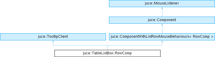 Public Member Functions inherited from juce::ComponentWithListRowMouseBehaviours< RowComp > | |