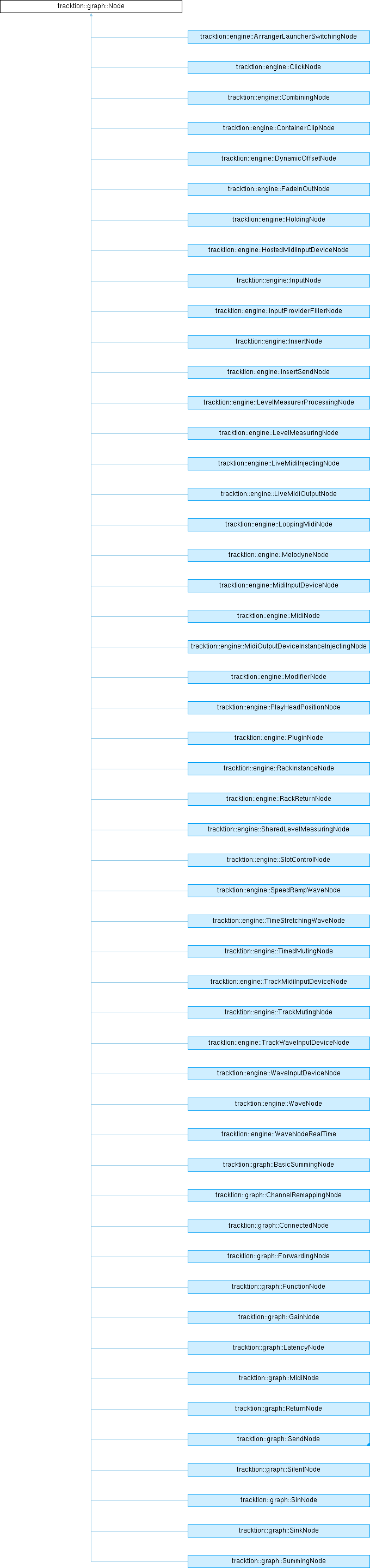 Implemented in tracktion::engine::ArrangerLauncherSwitchingNode, tracktion::engine::AuxSendNode, tracktion::engine::ClickNode, tracktion::engine::CombiningNode, tracktion::engine::ContainerClipNode, tracktion::engine::DynamicOffsetNode, tracktion::engine::FadeInOutNode, tracktion::engine::HostedMidiInputDeviceNode, tracktion::engine::InsertNode, tracktion::engine::InsertSendNode, tracktion::engine::LiveMidiInjectingNode, tracktion::engine::LiveMidiOutputNode, tracktion::engine::LoopingMidiNode, tracktion::engine::MelodyneNode, tracktion::engine::MidiInputDeviceNode, tracktion::engine::MidiNode, tracktion::engine::MidiOutputDeviceInstanceInjectingNode, tracktion::engine::ModifierNode, tracktion::engine::PluginNode, tracktion::engine::RackInstanceNode, tracktion::engine::InputProviderFillerNode, tracktion::engine::HoldingNode, tracktion::engine::RackReturnNode, tracktion::engine::SharedLevelMeasuringNode, tracktion::engine::SlotControlNode, tracktion::engine::SpeedRampWaveNode, tracktion::engine::TimedMutingNode, tracktion::engine::TimeStretchingWaveNode, tracktion::engine::TrackMidiInputDeviceNode, tracktion::engine::TrackMutingNode, tracktion::engine::TrackWaveInputDeviceNode, tracktion::engine::WaveInputDeviceNode, tracktion::engine::WaveNode, tracktion::engine::WaveNodeRealTime, tracktion::graph::ConnectedNode, tracktion::graph::SinkNode, tracktion::engine::LevelMeasurerProcessingNode, tracktion::engine::PlayHeadPositionNode, tracktion::engine::InputNode, tracktion::graph::LatencyNode, tracktion::graph::SummingNode, tracktion::graph::MidiNode, tracktion::graph::SinNode, tracktion::graph::SilentNode, tracktion::graph::BasicSummingNode, tracktion::graph::FunctionNode, tracktion::graph::GainNode, tracktion::graph::SendNode, tracktion::graph::ReturnNode, tracktion::graph::ChannelRemappingNode, tracktion::graph::ForwardingNode, and tracktion::engine::LevelMeasuringNode.