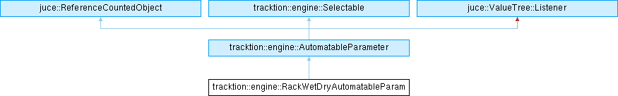 | RackWetDryAutomatableParam (const juce::String &xmlTag, const juce::String &name, RackInstance &owner, juce::Range< float > valueRangeToUse) | |
